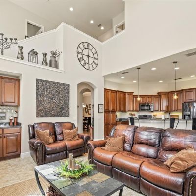 Ceiling Fan(s), Eating Space In Kitchen, High Ceilings, Kitchen/Family Room Combo, Open Floorplan, Primary Bedroom Main Floor, Solid Wood Cabinets, Stone Counters, Thermostat, Walk-In Closet(s), Wet Bar