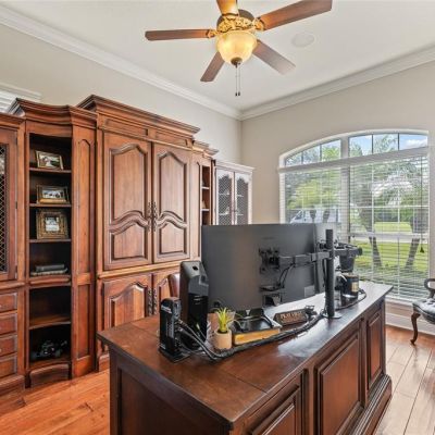 Ceiling Fan(s), Eating Space In Kitchen, High Ceilings, Kitchen/Family Room Combo, Open Floorplan, Primary Bedroom Main Floor, Solid Wood Cabinets, Stone Counters, Thermostat, Walk-In Closet(s), Wet Bar