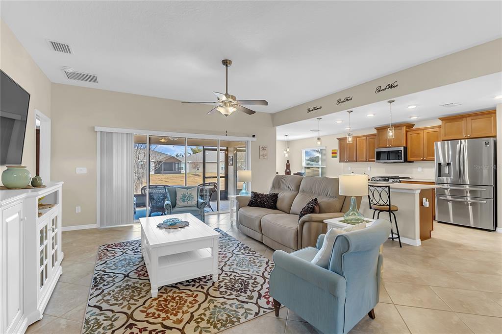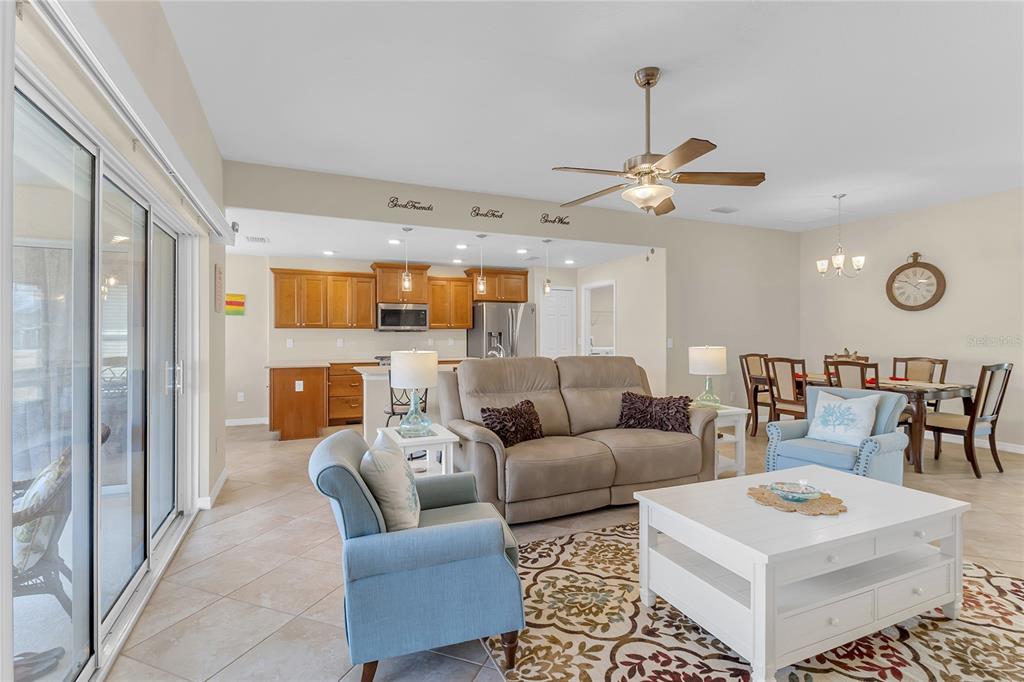 Ceiling Fan(s), Central Vacuum, Eating Space In Kitchen, Kitchen/Family Room Combo, Living Room/Dining Room Combo, Open Floorplan, Primary Bedroom Main Floor, Stone Counters, Thermostat, Walk-In Closet(s), Window Treatments