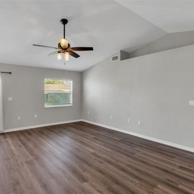 Ceiling Fan(s), Eating Space In Kitchen, Kitchen/Family Room Combo, Living Room/Dining Room Combo, Open Floorplan, Primary Bedroom Main Floor, Vaulted Ceiling(s), Window Treatments