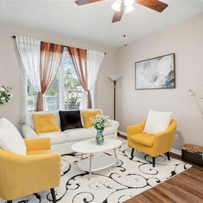 Ceiling Fan(s), High Ceilings, Kitchen/Family Room Combo, Living Room/Dining Room Combo, Open Floorplan, Thermostat, Walk-In Closet(s), Window Treatments