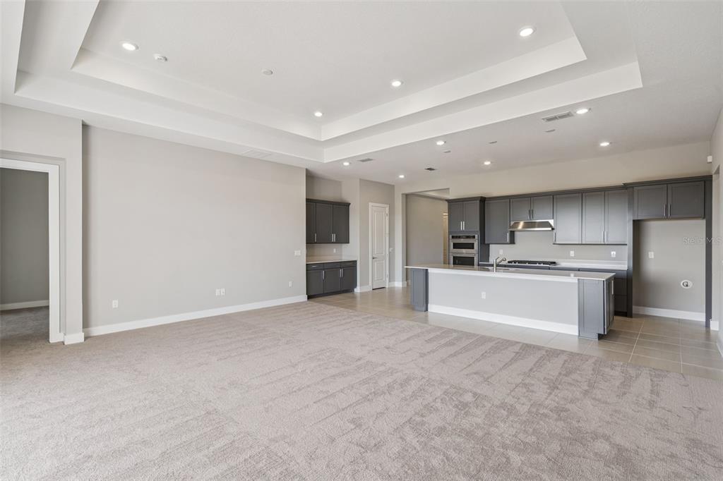 Cathedral Ceiling(s), Eating Space In Kitchen, High Ceilings, Kitchen/Family Room Combo, Living Room/Dining Room Combo, Open Floorplan, Pest Guard System, Primary Bedroom Main Floor, Smart Home, Solid Surface Counters, Solid Wood Cabinets, Stone Counters, Thermostat, Tray Ceiling(s), Vaulted Ceiling(s), Walk-In Closet(s)