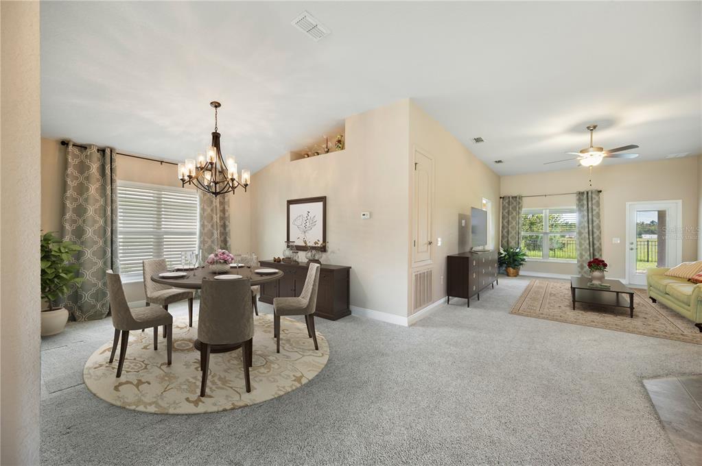 Ceiling Fan(s), Eating Space In Kitchen, High Ceilings, Open Floorplan, Split Bedroom, Thermostat, Vaulted Ceiling(s), Walk-In Closet(s), Window Treatments
