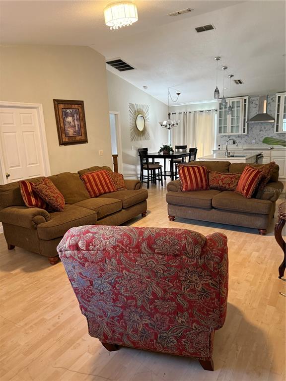 Ceiling Fan(s), Living Room/Dining Room Combo, Open Floorplan, Primary Bedroom Main Floor, Vaulted Ceiling(s)