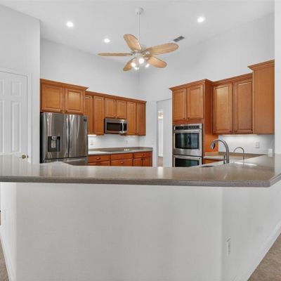 Ceiling Fan(s), Eating Space In Kitchen, Kitchen/Family Room Combo, Open Floorplan, Primary Bedroom Main Floor, Solid Surface Counters, Split Bedroom, Tray Ceiling(s), Walk-In Closet(s)