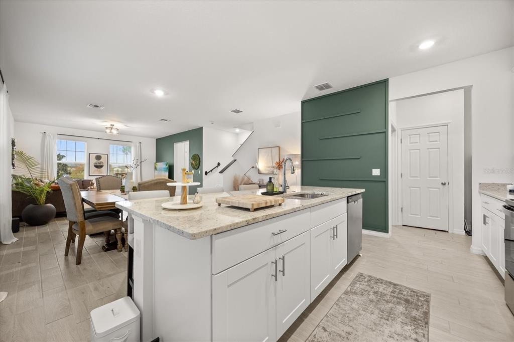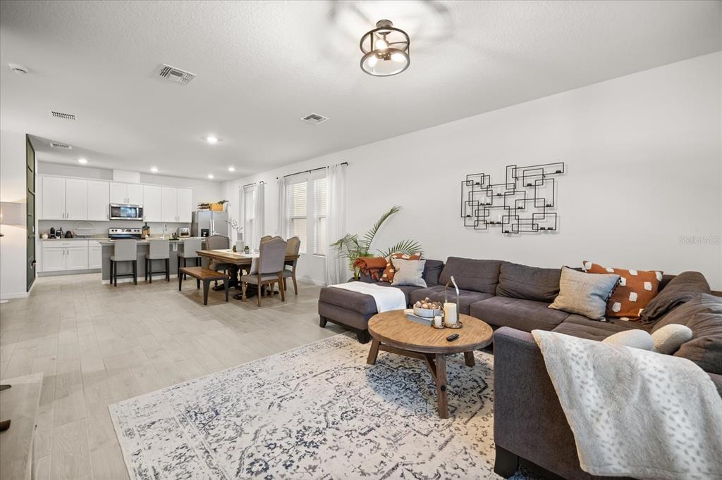 Kitchen/Family Room Combo, PrimaryBedroom Upstairs, Split Bedroom, Stone Counters, Thermostat, Walk-In Closet(s)