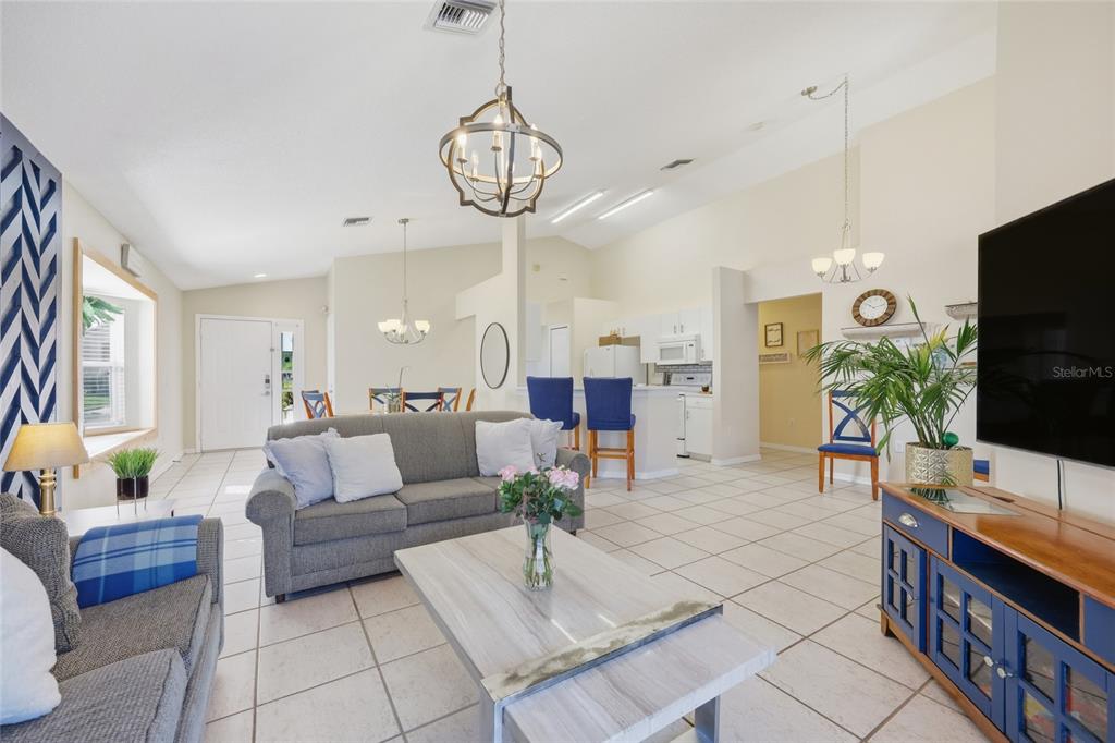 Cathedral Ceiling(s), Ceiling Fan(s), Eating Space In Kitchen, High Ceilings, Kitchen/Family Room Combo, Living Room/Dining Room Combo, Open Floorplan, Primary Bedroom Main Floor, Thermostat, Walk-In Closet(s)