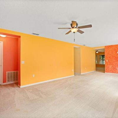 Ceiling Fan(s), Living Room/Dining Room Combo, Primary Bedroom Main Floor, Solid Surface Counters, Solid Wood Cabinets, Thermostat, Window Treatments