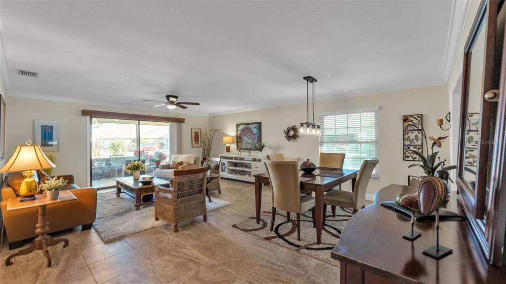Ceiling Fan(s), Living Room/Dining Room Combo, Open Floorplan, Solid Surface Counters, Solid Wood Cabinets, Window Treatments