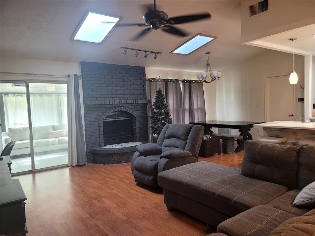 Ceiling Fan(s), Eating Space In Kitchen, Living Room/Dining Room Combo, Open Floorplan, Solid Wood Cabinets, Stone Counters