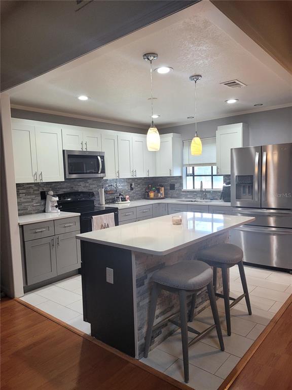 Electric Water Heater, Microwave, Range, Refrigerator