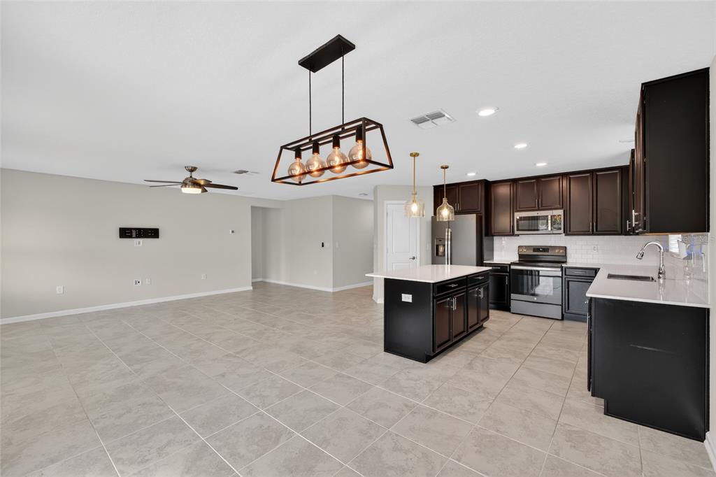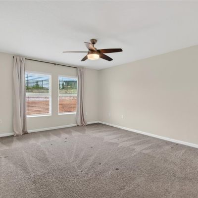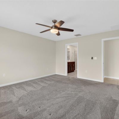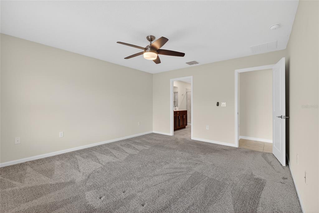 Ceiling Fan(s), High Ceilings, Living Room/Dining Room Combo, Open Floorplan, Primary Bedroom Main Floor, Solid Surface Counters, Split Bedroom, Thermostat, Walk-In Closet(s)
