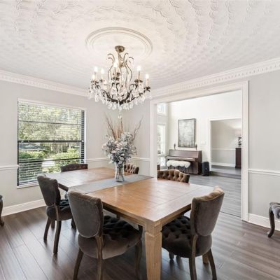 Cathedral Ceiling(s), Ceiling Fan(s), Chair Rail, Crown Molding, Eating Space In Kitchen, High Ceilings, Open Floorplan, Primary Bedroom Main Floor, Skylight(s), Solid Surface Counters, Solid Wood Cabinets, Thermostat, Vaulted Ceiling(s), Walk-In Closet(s), Window Treatments