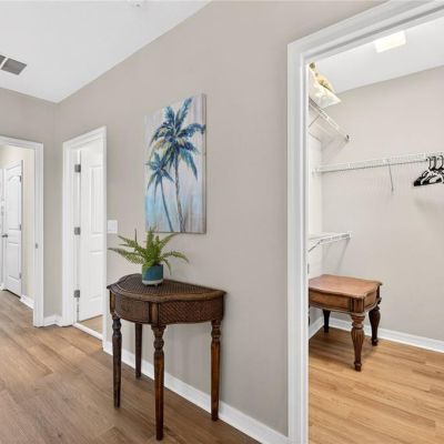 Ceiling Fan(s), Primary Bedroom Main Floor, Stone Counters, Thermostat, Walk-In Closet(s), Window Treatments
