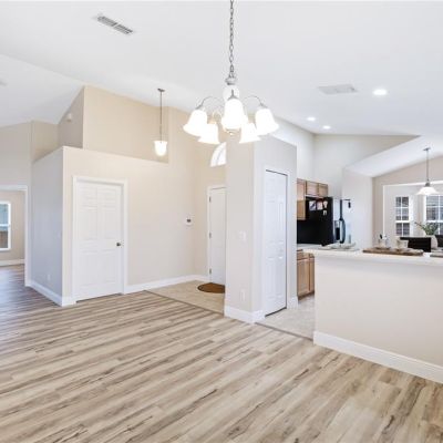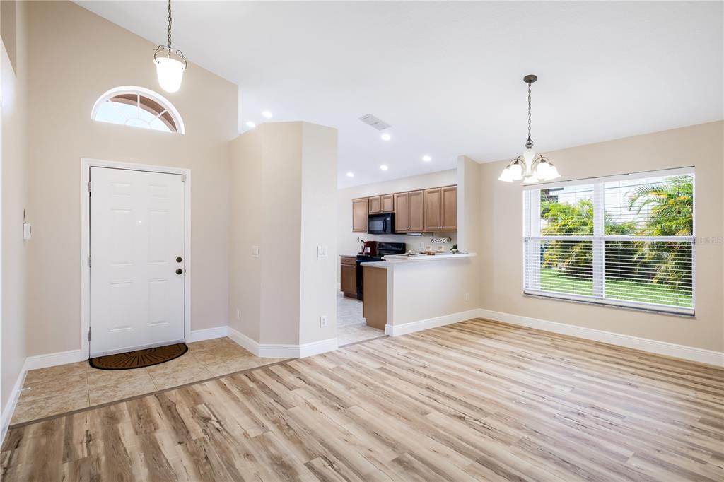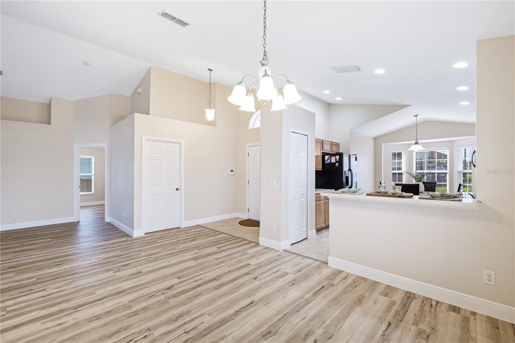 Ceiling Fan(s), Eating Space In Kitchen, High Ceilings, Living Room/Dining Room Combo, Open Floorplan, Solid Surface Counters, Solid Wood Cabinets, Split Bedroom, Thermostat, Vaulted Ceiling(s), Walk-In Closet(s), Window Treatments