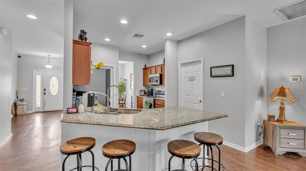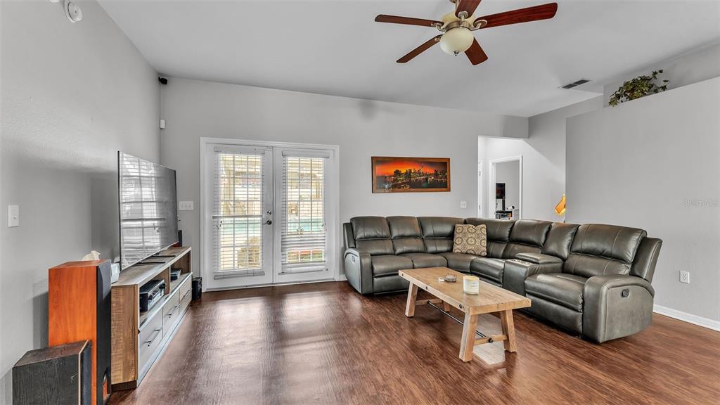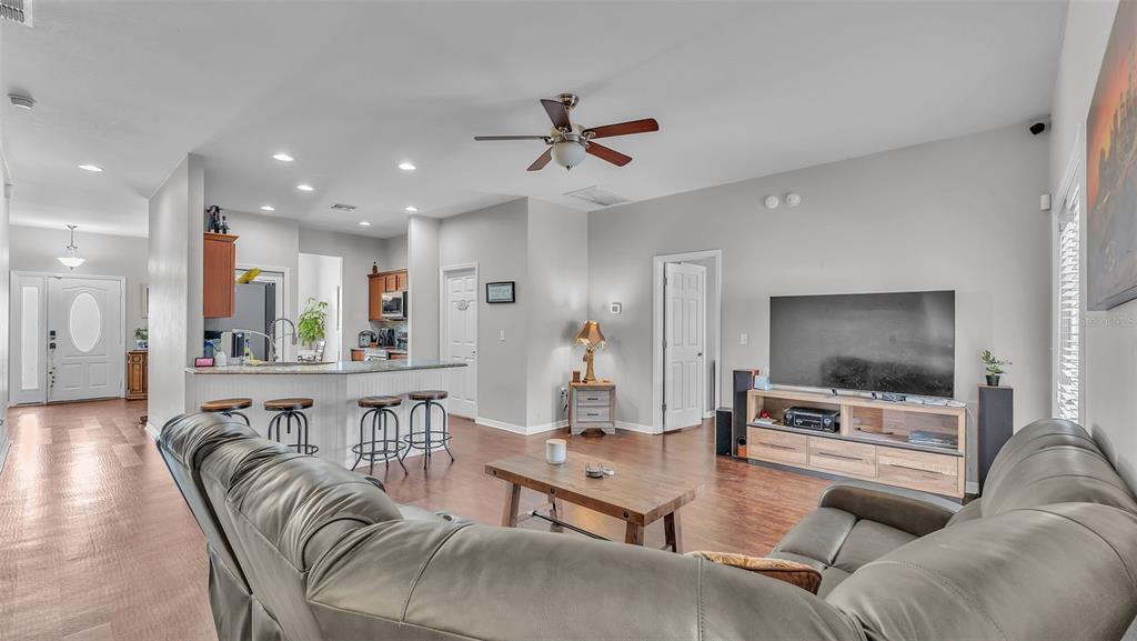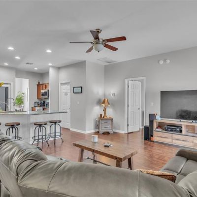Ceiling Fan(s), Kitchen/Family Room Combo, Open Floorplan, Solid Surface Counters, Split Bedroom, Thermostat, Tray Ceiling(s), Walk-In Closet(s)