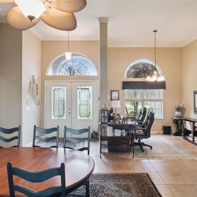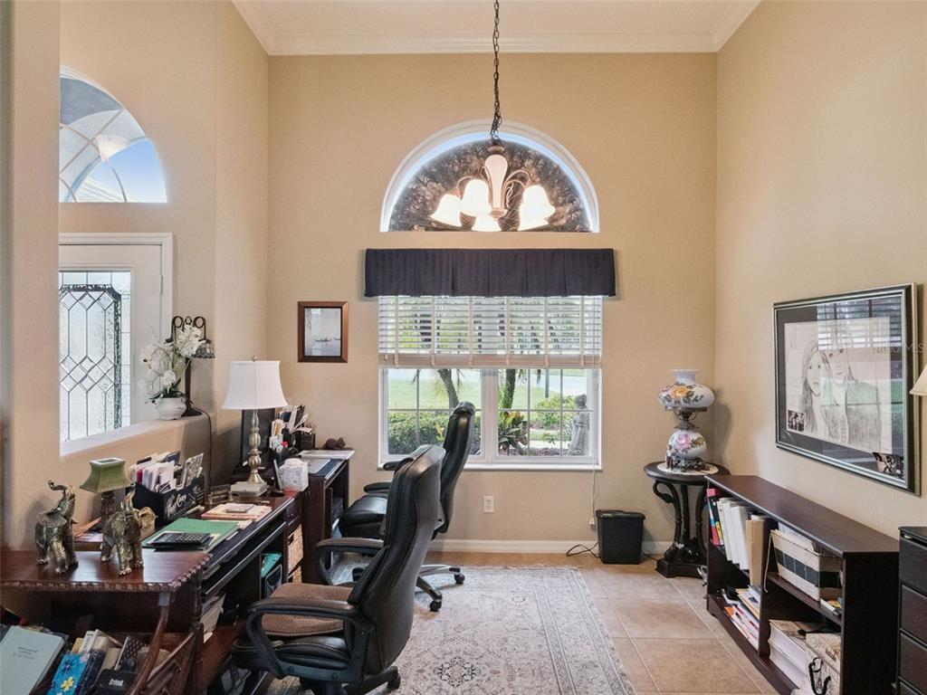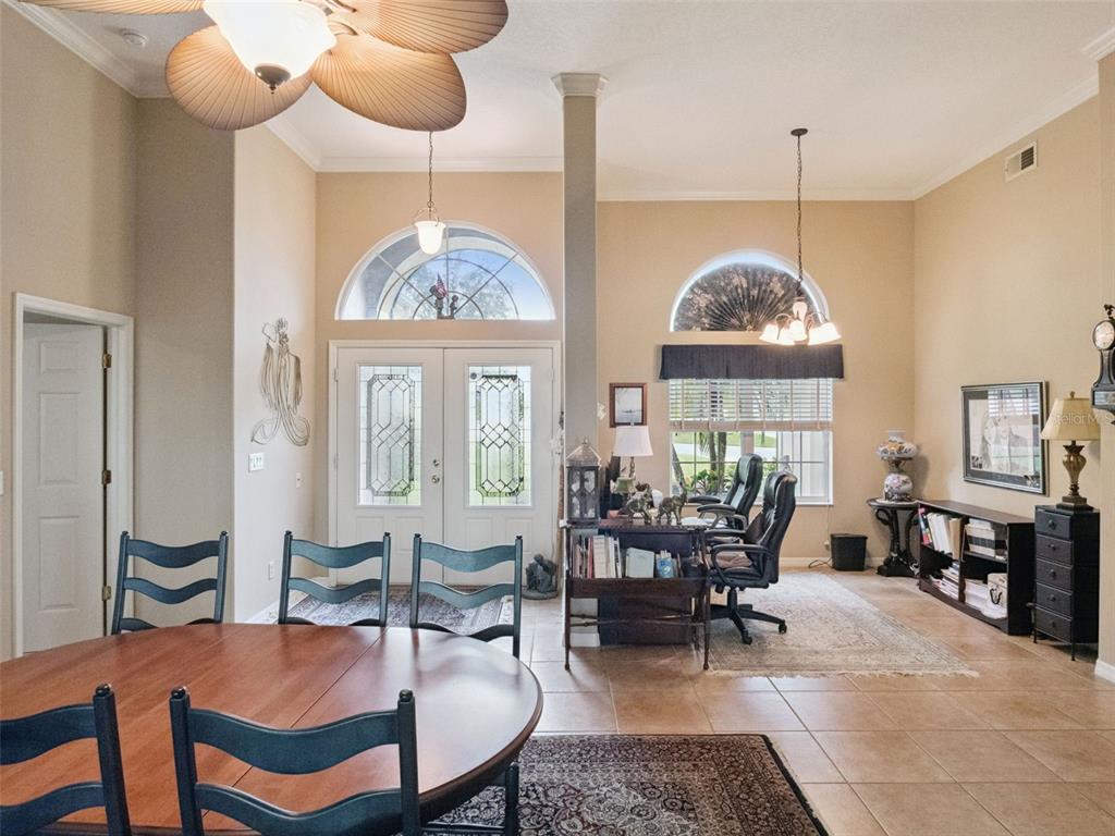 Built-in Features, Ceiling Fan(s), Crown Molding, Eating Space In Kitchen, High Ceilings, Primary Bedroom Main Floor, Tray Ceiling(s), Walk-In Closet(s), Window Treatments