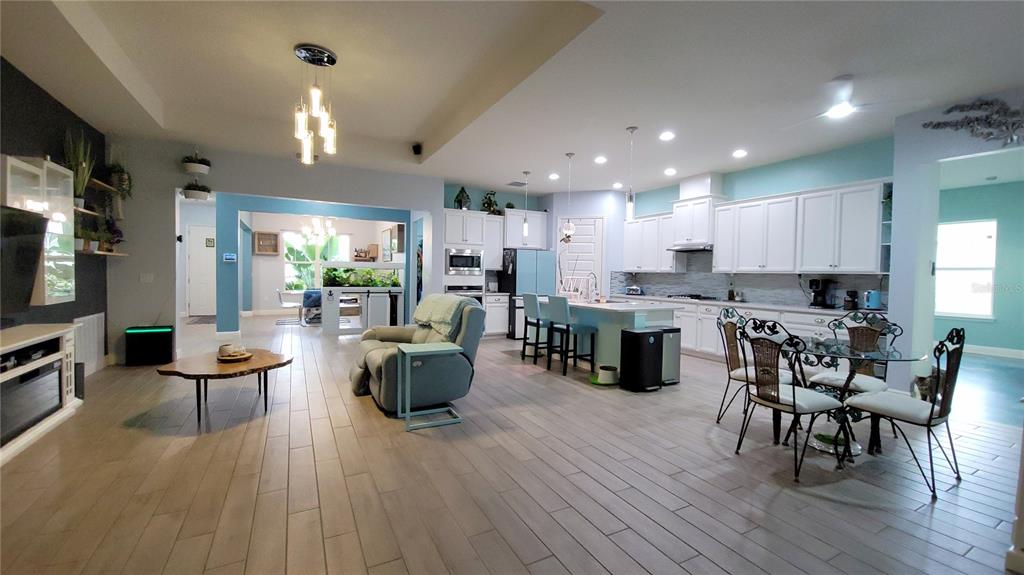 Accessibility Features, Ceiling Fan(s), Eating Space In Kitchen, High Ceilings, Kitchen/Family Room Combo, Living Room/Dining Room Combo, Open Floorplan, Pest Guard System, Primary Bedroom Main Floor, Smart Home, Solid Surface Counters, Solid Wood Cabinets, Split Bedroom, Thermostat, Tray Ceiling(s), Walk-In Closet(s), Window Treatments