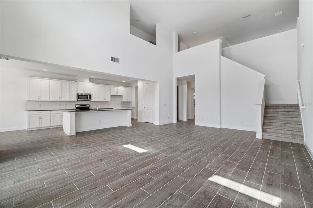 High Ceilings, Kitchen/Family Room Combo, Open Floorplan, Primary Bedroom Main Floor, Solid Surface Counters, Split Bedroom, Thermostat, Vaulted Ceiling(s), Walk-In Closet(s)