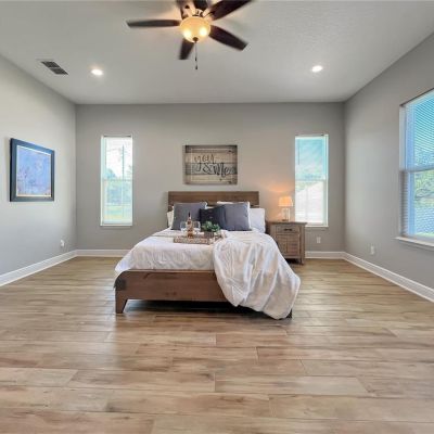 Ceiling Fan(s), High Ceilings, Open Floorplan, Primary Bedroom Main Floor, Solid Wood Cabinets, Stone Counters, Thermostat, Tray Ceiling(s)