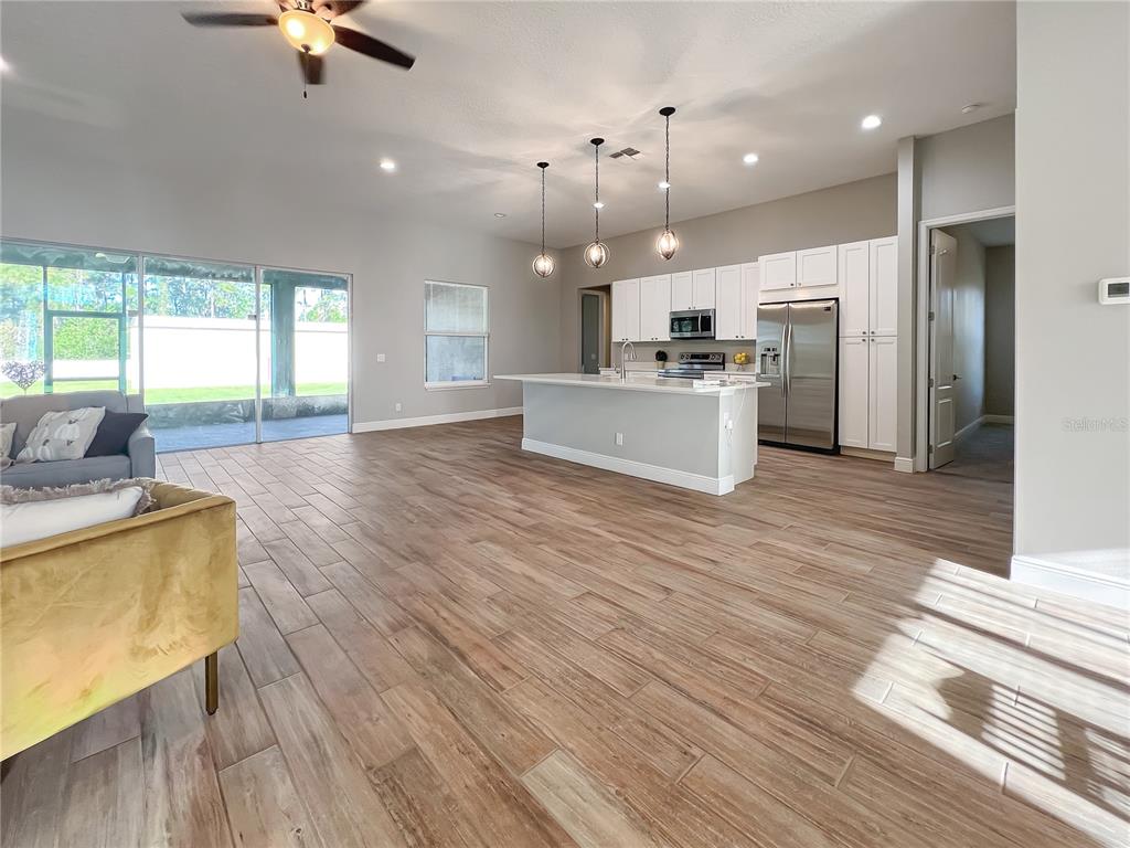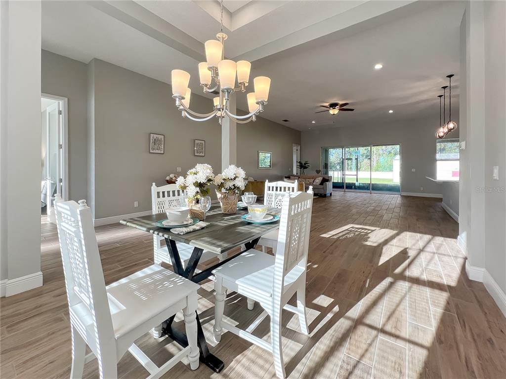Ceiling Fan(s), High Ceilings, Open Floorplan, Primary Bedroom Main Floor, Solid Wood Cabinets, Stone Counters, Thermostat, Tray Ceiling(s)