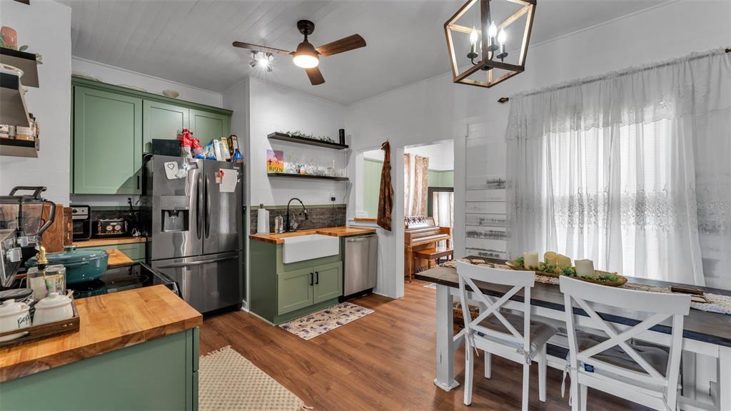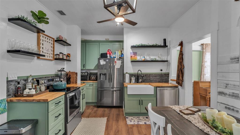 Ceiling Fan(s), Crown Molding, Eating Space In Kitchen