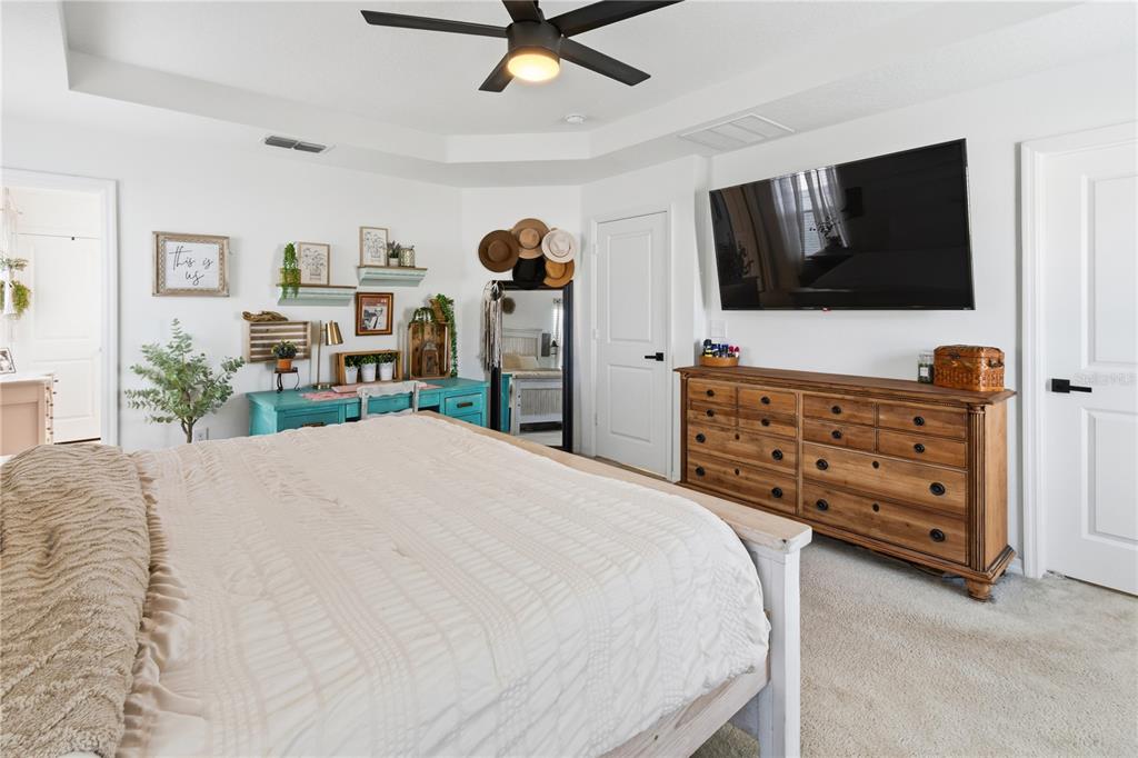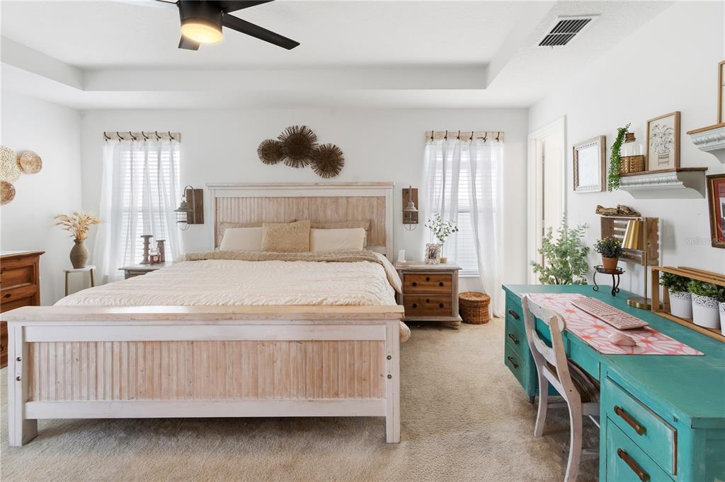 Ceiling Fan(s), Kitchen/Family Room Combo, Living Room/Dining Room Combo, Open Floorplan, Split Bedroom, Thermostat, Tray Ceiling(s)