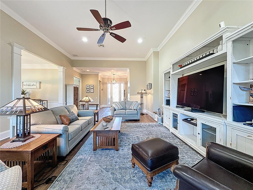Ceiling Fan(s), Crown Molding, Eating Space In Kitchen, Open Floorplan, Primary Bedroom Main Floor, Solid Wood Cabinets, Split Bedroom, Stone Counters, Thermostat, Walk-In Closet(s)