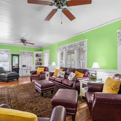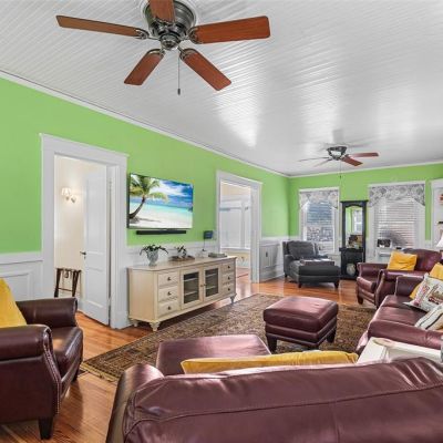 Built-in Features, Ceiling Fan(s), Crown Molding, Eating Space In Kitchen, High Ceilings, Stone Counters