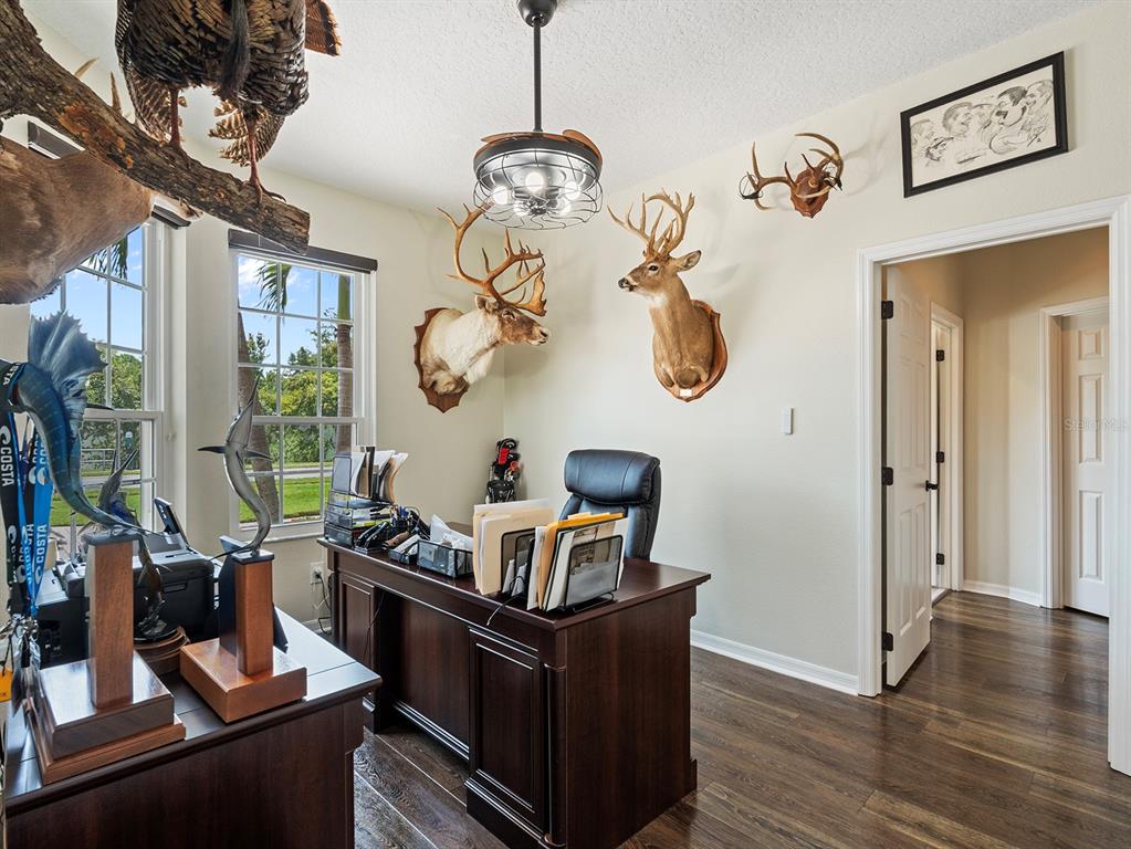 Built-in Features, Ceiling Fan(s), Central Vacuum, Eating Space In Kitchen, High Ceilings, Kitchen/Family Room Combo, Open Floorplan, Primary Bedroom Main Floor, Solid Wood Cabinets, Stone Counters, Thermostat, Tray Ceiling(s), Walk-In Closet(s), Window Treatments