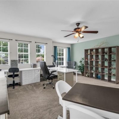 Ceiling Fan(s), Eating Space In Kitchen, PrimaryBedroom Upstairs, Solid Surface Counters, Solid Wood Cabinets, Thermostat, Walk-In Closet(s), Window Treatments