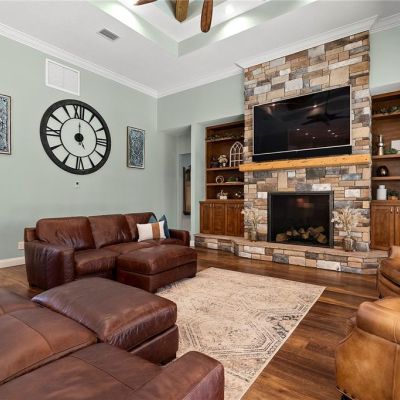 Built-in Features, Ceiling Fan(s), Central Vacuum, Crown Molding, High Ceilings, Kitchen/Family Room Combo, Open Floorplan, Primary Bedroom Main Floor, Smart Home, Solid Surface Counters, Solid Wood Cabinets, Split Bedroom, Stone Counters, Thermostat, Tray Ceiling(s), Walk-In Closet(s), Wet Bar, Window Treatments