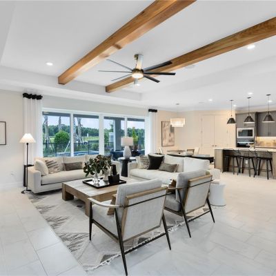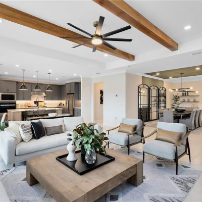 Eating Space In Kitchen, High Ceilings, Kitchen/Family Room Combo, Living Room/Dining Room Combo, Open Floorplan, Primary Bedroom Main Floor, Split Bedroom, Stone Counters, Thermostat, Tray Ceiling(s), Walk-In Closet(s)