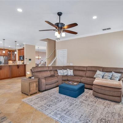 Ceiling Fan(s), Crown Molding, Eating Space In Kitchen, High Ceilings, In Wall Pest System, Kitchen/Family Room Combo, Living Room/Dining Room Combo, Open Floorplan, PrimaryBedroom Upstairs, Solid Wood Cabinets, Split Bedroom, Stone Counters, Walk-In Closet(s), Window Treatments