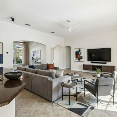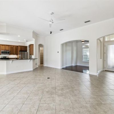 Ceiling Fan(s), Crown Molding, Eating Space In Kitchen, High Ceilings, Kitchen/Family Room Combo, Living Room/Dining Room Combo, Open Floorplan, Primary Bedroom Main Floor, Solid Wood Cabinets, Split Bedroom, Stone Counters, Thermostat, Tray Ceiling(s), Walk-In Closet(s), Window Treatments