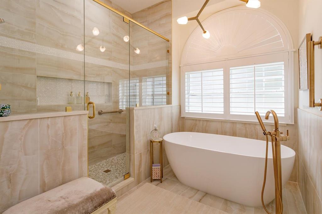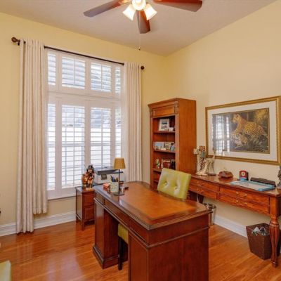 Ceiling Fan(s), Eating Space In Kitchen, High Ceilings, Kitchen/Family Room Combo, Primary Bedroom Main Floor, Solid Surface Counters, Split Bedroom, Stone Counters, Thermostat, Walk-In Closet(s), Window Treatments