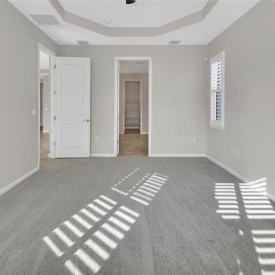 Ceiling Fan(s), High Ceilings, Open Floorplan, Primary Bedroom Main Floor, Split Bedroom, Stone Counters, Thermostat, Tray Ceiling(s), Walk-In Closet(s), Window Treatments