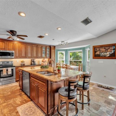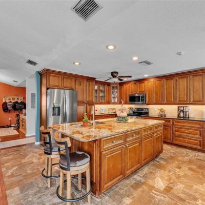 Ceiling Fan(s), Eating Space In Kitchen, Stone Counters