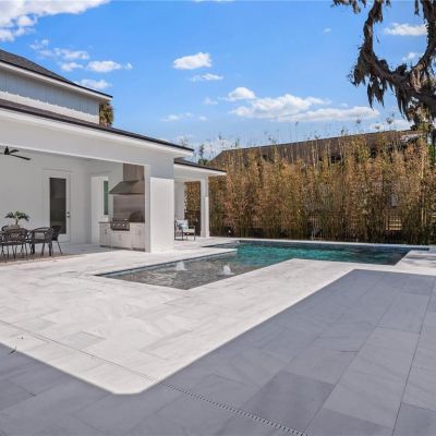 French Doors, Lighting, Outdoor Grill, Outdoor Kitchen, Sidewalk, Sprinkler Metered