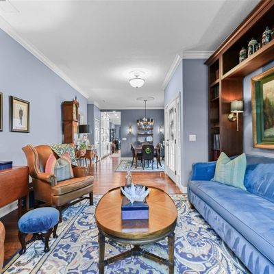 Built-in Features, Crown Molding, Eating Space In Kitchen, High Ceilings, Open Floorplan, Primary Bedroom Main Floor, Split Bedroom, Stone Counters, Thermostat, Walk-In Closet(s), Window Treatments