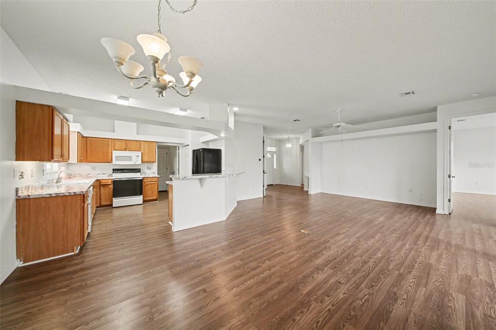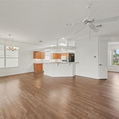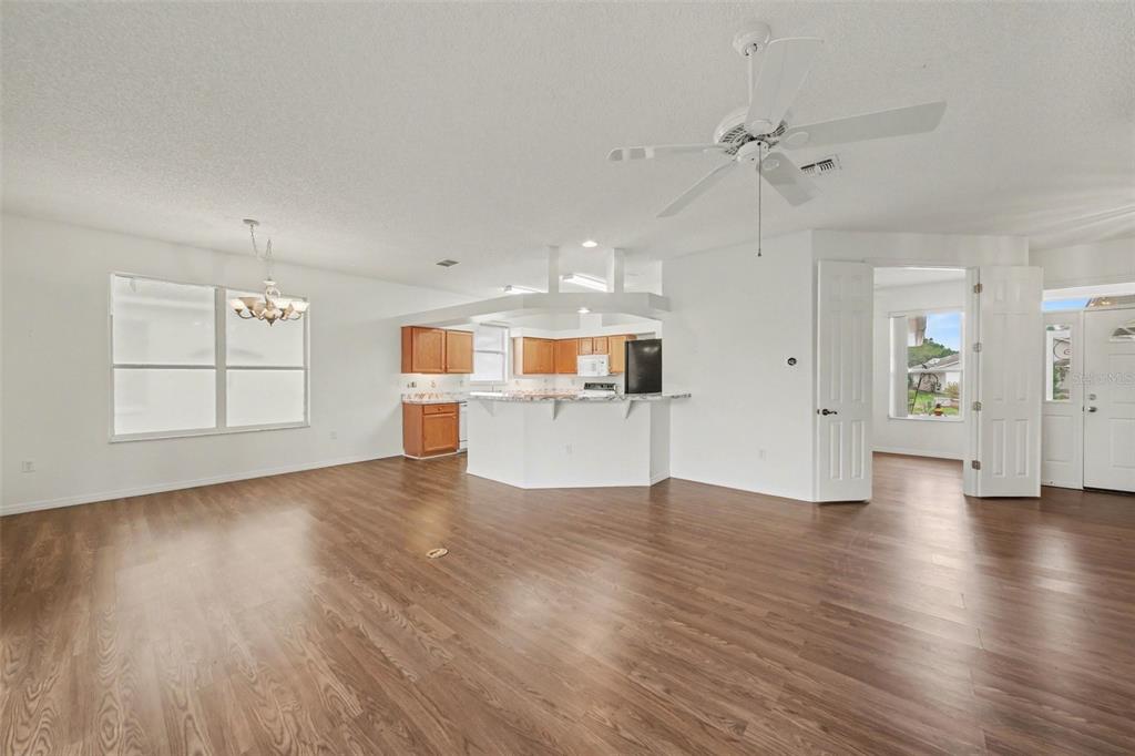 Ceiling Fan(s), High Ceilings, Kitchen/Family Room Combo, Living Room/Dining Room Combo, Open Floorplan, Primary Bedroom Main Floor