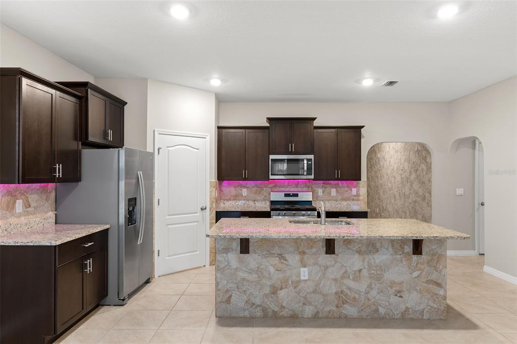Ceiling Fan(s), High Ceilings, Kitchen/Family Room Combo, Open Floorplan, Stone Counters, Thermostat, Walk-In Closet(s)