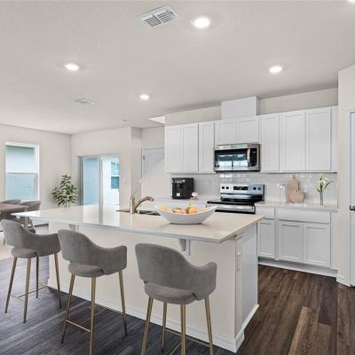 Eating Space In Kitchen, Kitchen/Family Room Combo, Living Room/Dining Room Combo, Open Floorplan, PrimaryBedroom Upstairs, Solid Surface Counters, Stone Counters, Thermostat, Walk-In Closet(s)