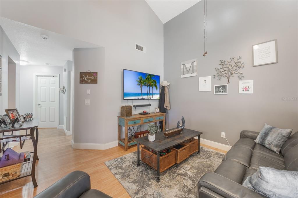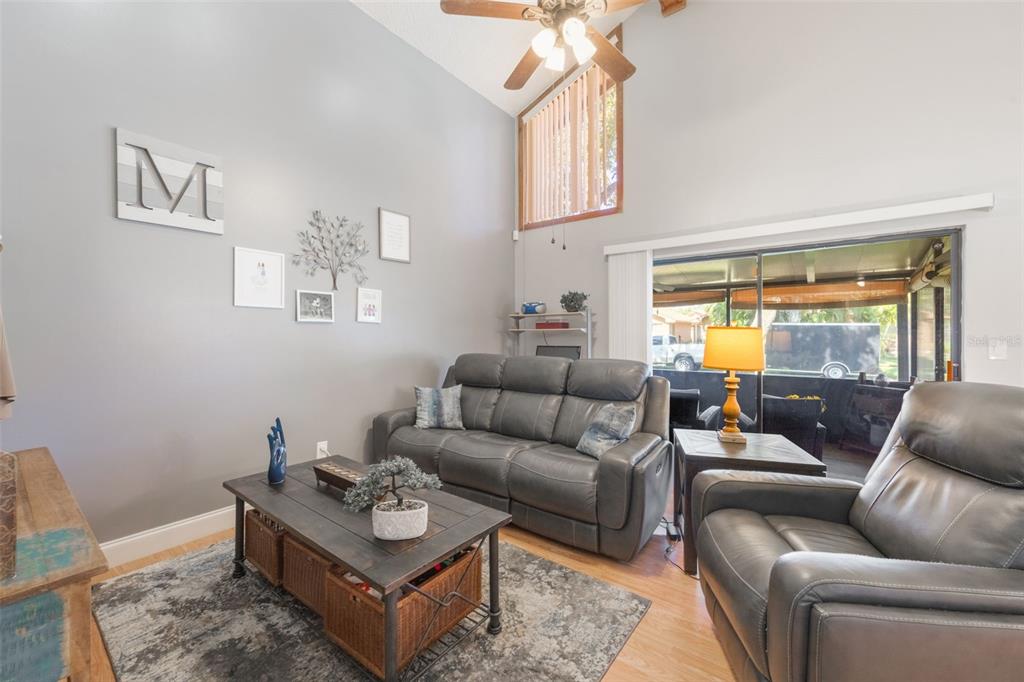 Cathedral Ceiling(s), Ceiling Fan(s), High Ceilings, Living Room/Dining Room Combo, Primary Bedroom Main Floor, Stone Counters