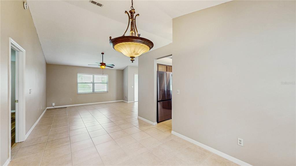 Cathedral Ceiling(s), Ceiling Fan(s), Eating Space In Kitchen, High Ceilings, L Dining, Primary Bedroom Main Floor, Solid Wood Cabinets, Split Bedroom, Stone Counters, Thermostat, Walk-In Closet(s)
