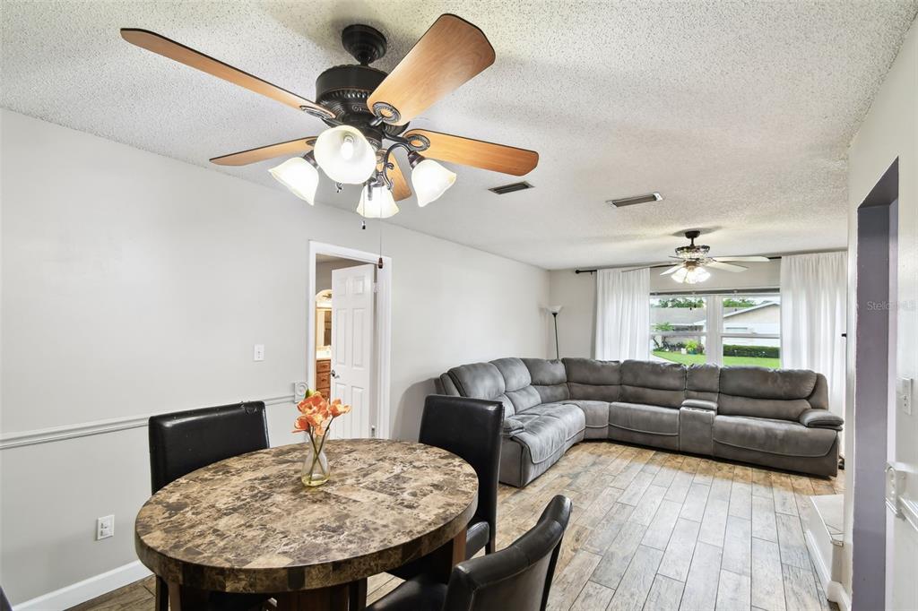 Ceiling Fan(s), Chair Rail, Kitchen/Family Room Combo, Living Room/Dining Room Combo, Split Bedroom, Thermostat, Walk-In Closet(s)