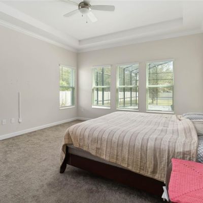 Ceiling Fan(s), Eating Space In Kitchen, High Ceilings, Living Room/Dining Room Combo, Open Floorplan, Primary Bedroom Main Floor, Solid Surface Counters, Split Bedroom, Stone Counters, Thermostat, Tray Ceiling(s), Walk-In Closet(s)