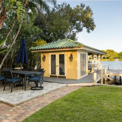 Awning(s), French Doors, Irrigation System, Lighting, Outdoor Grill, Outdoor Kitchen, Private Mailbox, Rain Gutters, Sauna, Sidewalk