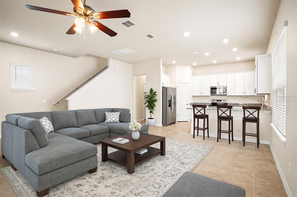 Ceiling Fan(s), Eating Space In Kitchen, Living Room/Dining Room Combo, PrimaryBedroom Upstairs, Solid Surface Counters, Split Bedroom, Thermostat, Walk-In Closet(s)