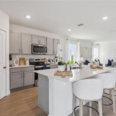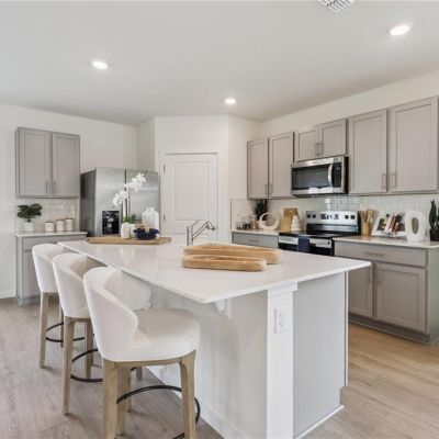 Eating Space In Kitchen, Kitchen/Family Room Combo, Living Room/Dining Room Combo, Open Floorplan, PrimaryBedroom Upstairs, Solid Surface Counters, Stone Counters, Thermostat, Walk-In Closet(s)